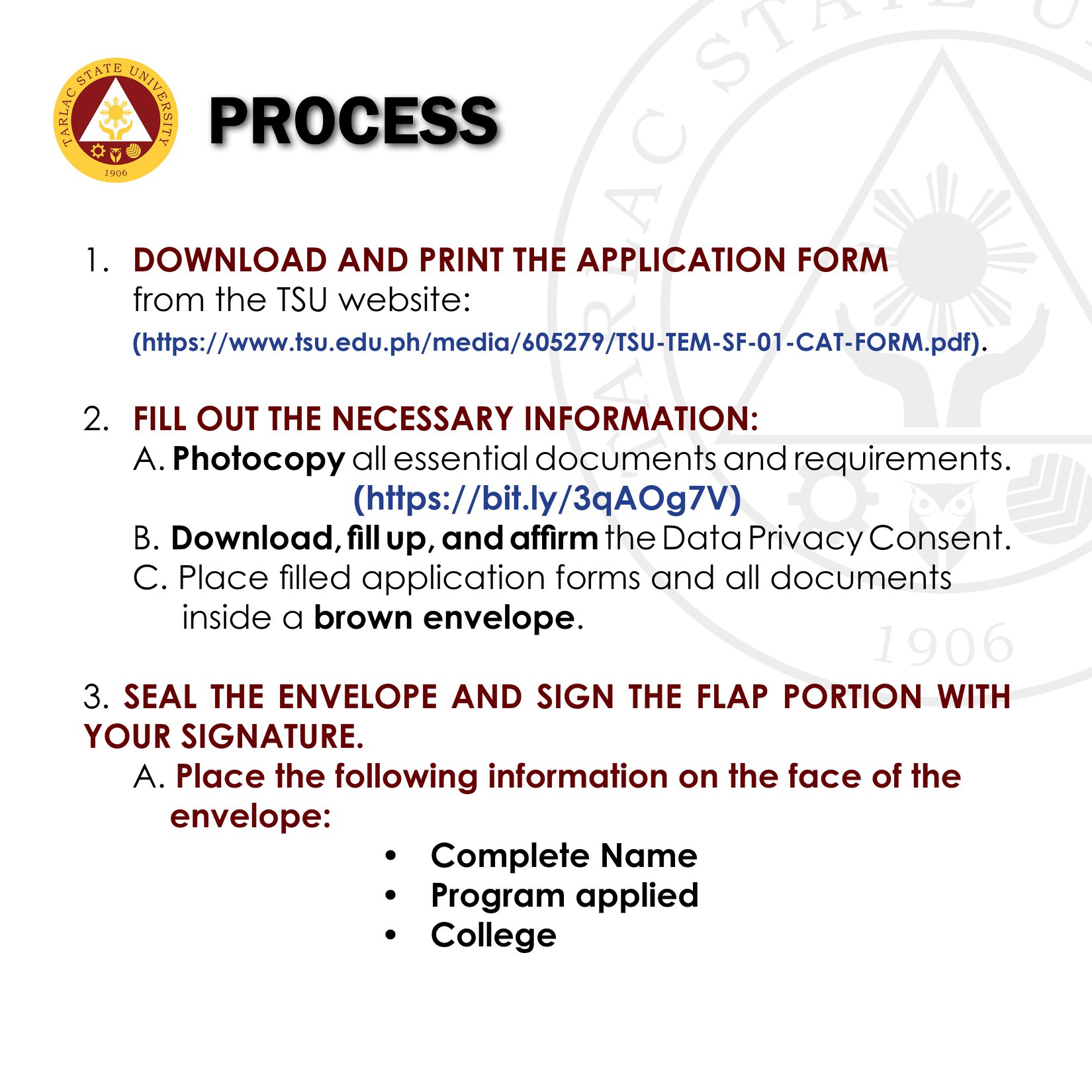 1. 𝗗𝗢𝗪𝗡𝗟𝗢𝗔𝗗 𝗔𝗡𝗗 𝗣𝗥𝗜𝗡𝗧 𝗧𝗛𝗘 𝗔𝗣𝗣𝗟𝗜𝗖𝗔𝗧𝗜𝗢𝗡 𝗙𝗢𝗥𝗠 𝗳𝗿𝗼𝗺 𝘁𝗵𝗲 𝗧𝗦𝗨 𝘄𝗲𝗯𝘀𝗶𝘁𝗲: (/.../605279/TSU-TEM-SF-01-CAT-FORM.pdf).