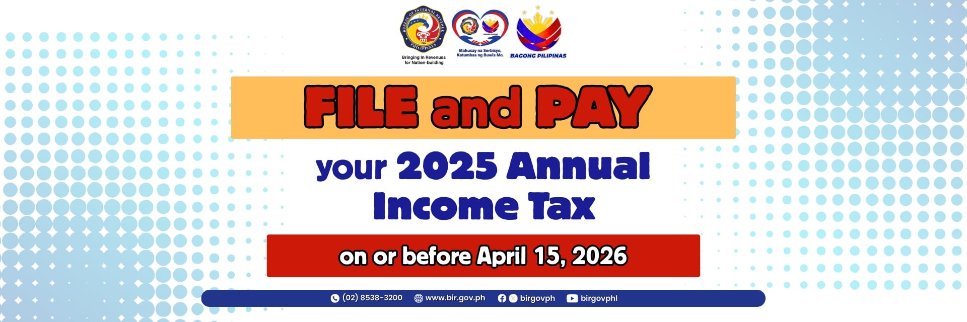 In compliance with the regulations of the Bureau of Internal Revenue (BIR), please ensure that your filings and payments are settled on or before April 15, 2026.