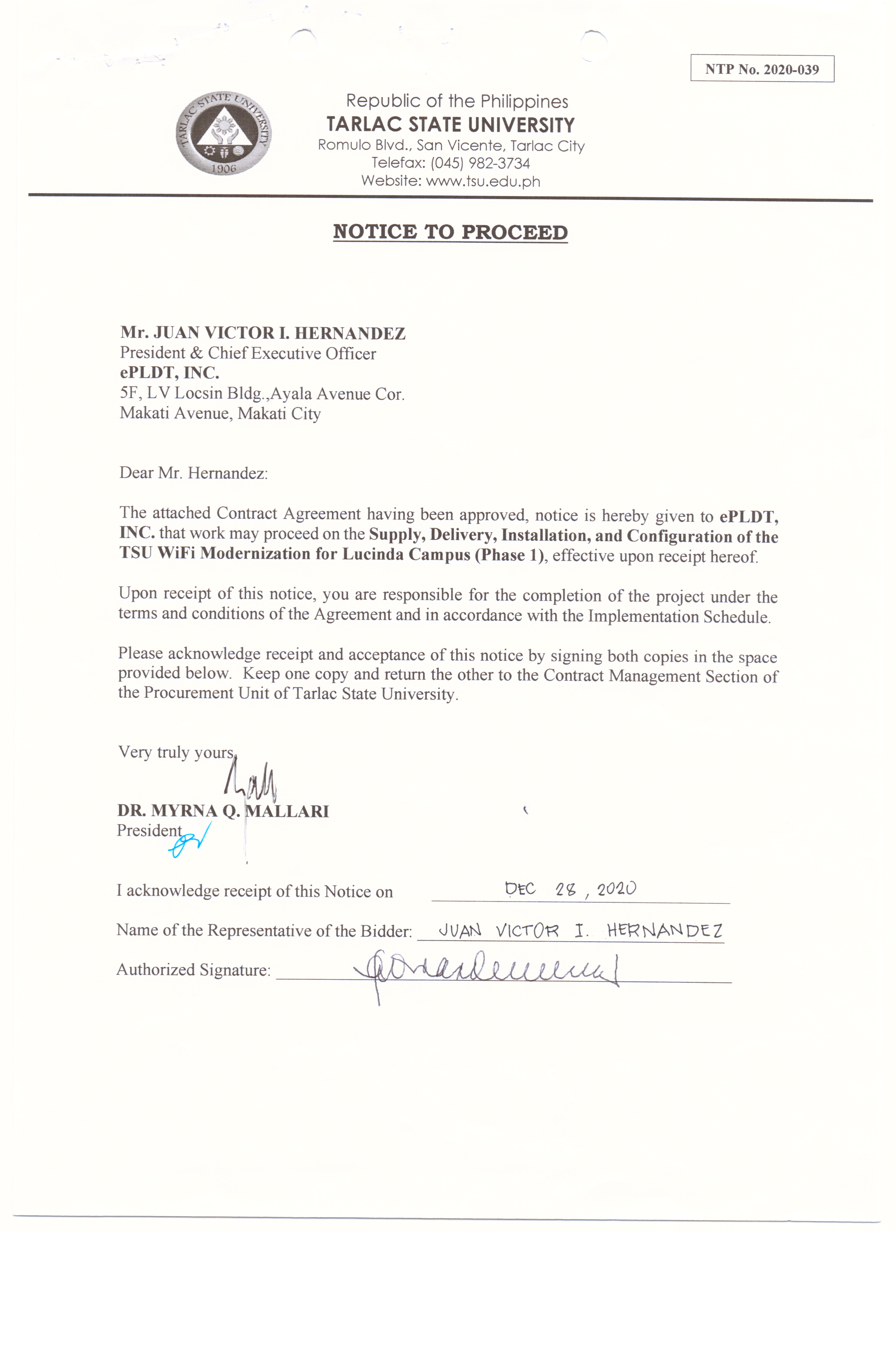 SUPPLY, DELIVERY, INSTALLATION, AND CONFIGURATION OF THE TSU WIFI MODERNIZATION FOR LUCINDA CAMPUS (PHASE 1)