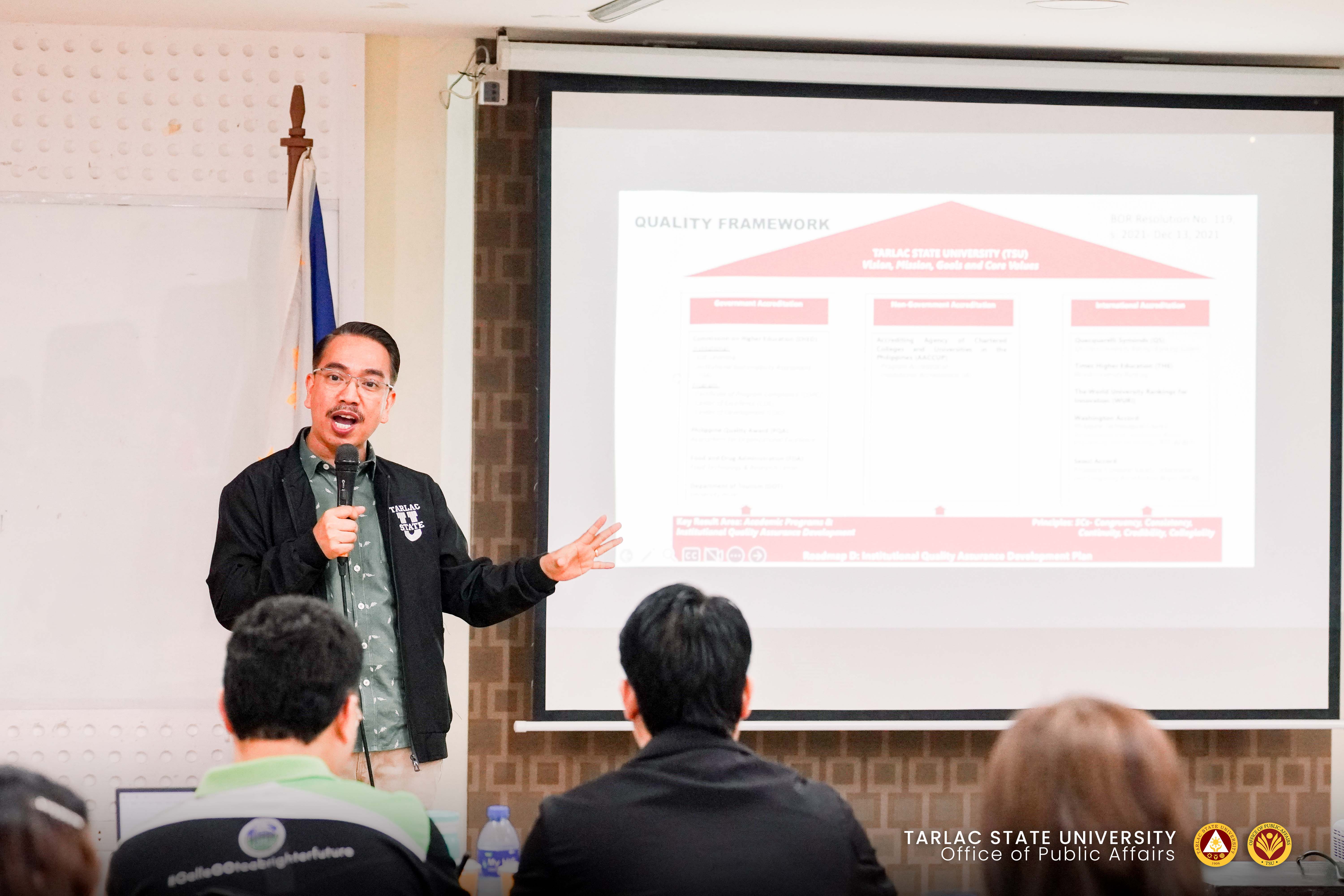 Dr. Nino B. Corpuz, Office of Quality Assurance director, discussed TSU's quality framework, organizational structure, and key milestones.
