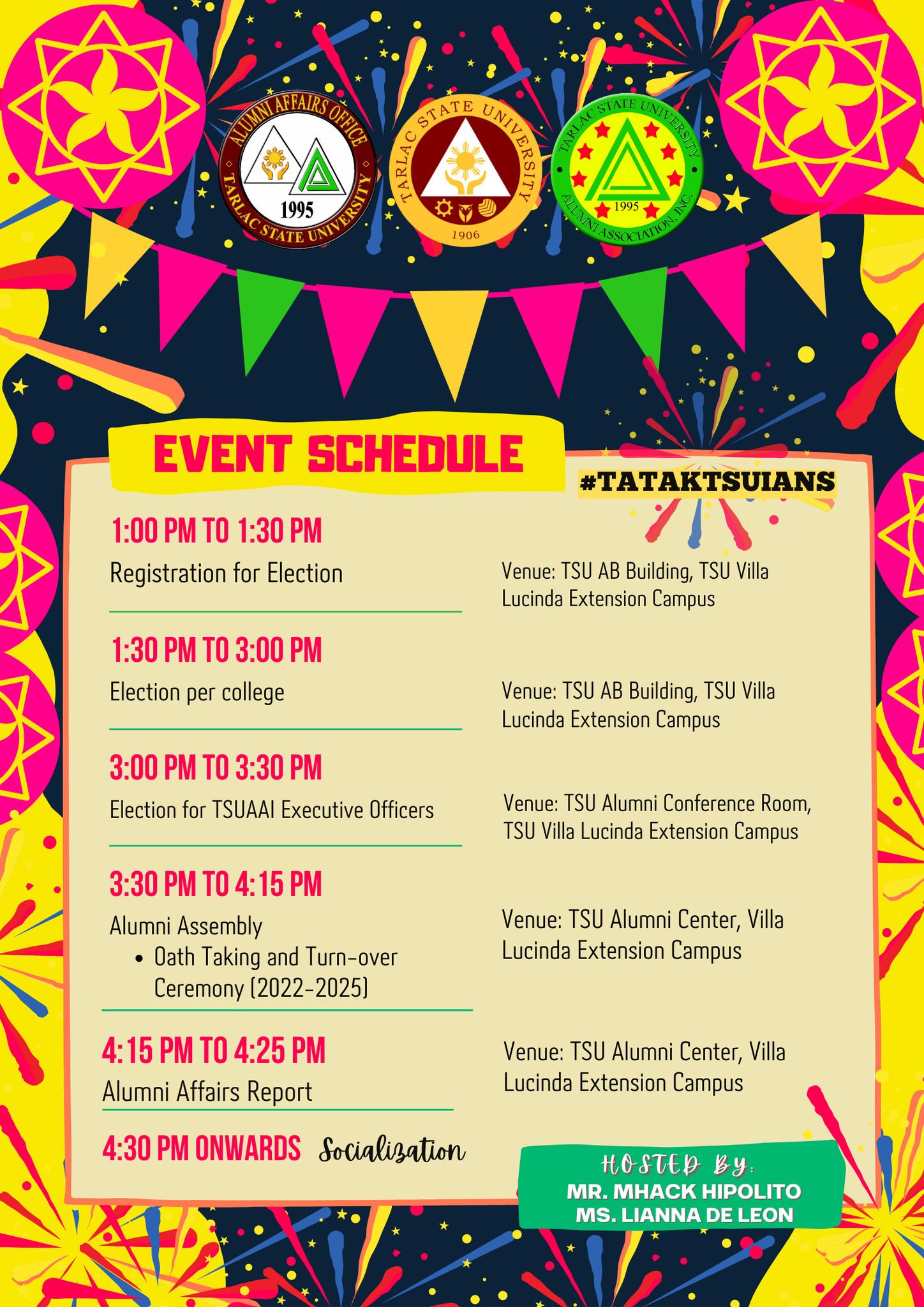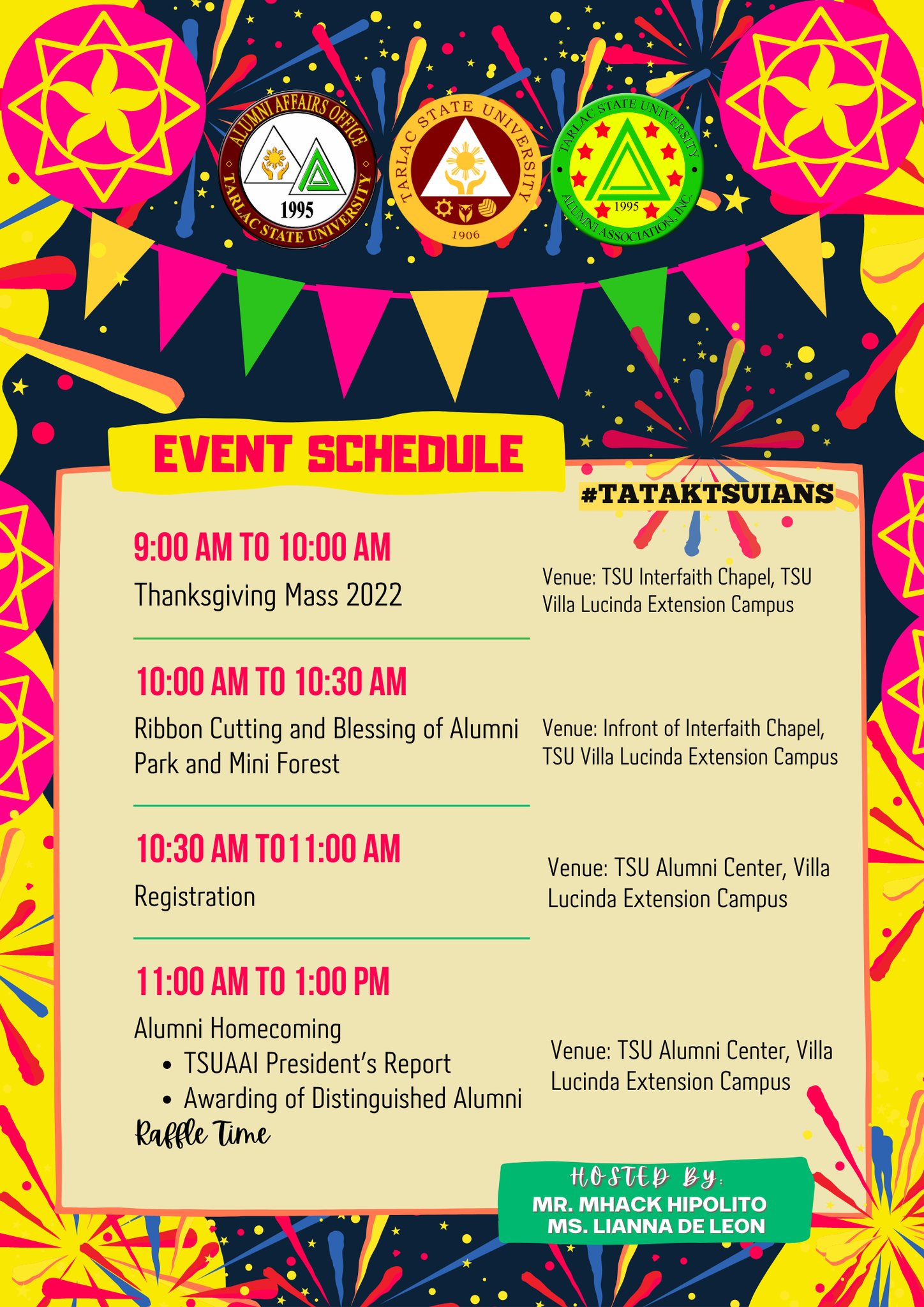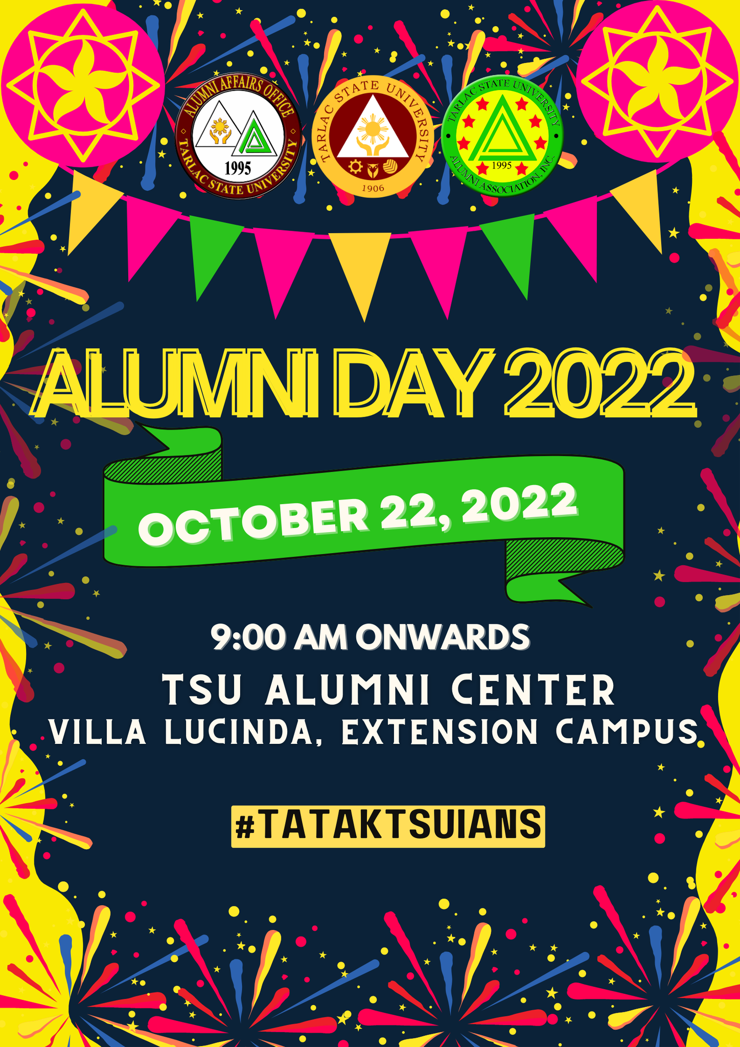 In line with the 116th foundation and 33rd charter anniversary of our beloved university, the Tarlac State University Alumni Association Inc. has prepared festive activities that the alumni will enjoy in-person and virtually!